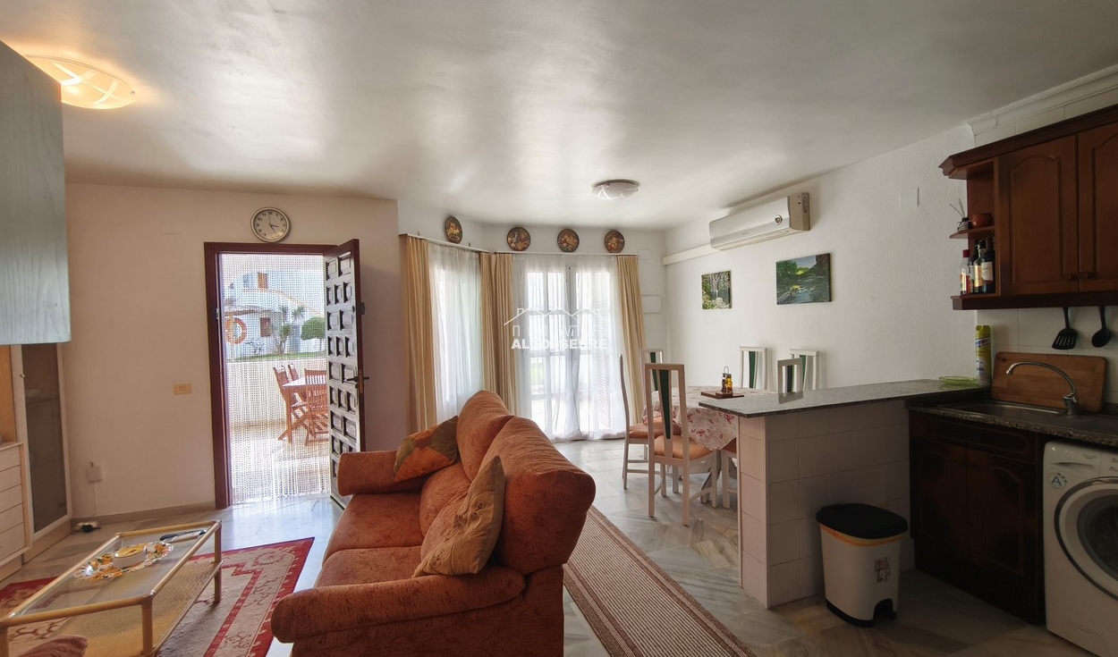 La amplia terraza, que da a la piscina y los jardines comunitarios, es perfecta para disfrutar del sol y relajarte en un entorno natural. Además, el complejo ofrece una pista de tenis para los amantes del deporte y plazas de parking cubiertas para todos los propietarios. El interior del piso es luminoso y acogedor, con un amplio salón/comedor y una cocina abierta, todo amueblado y listo para entrar a vivir.